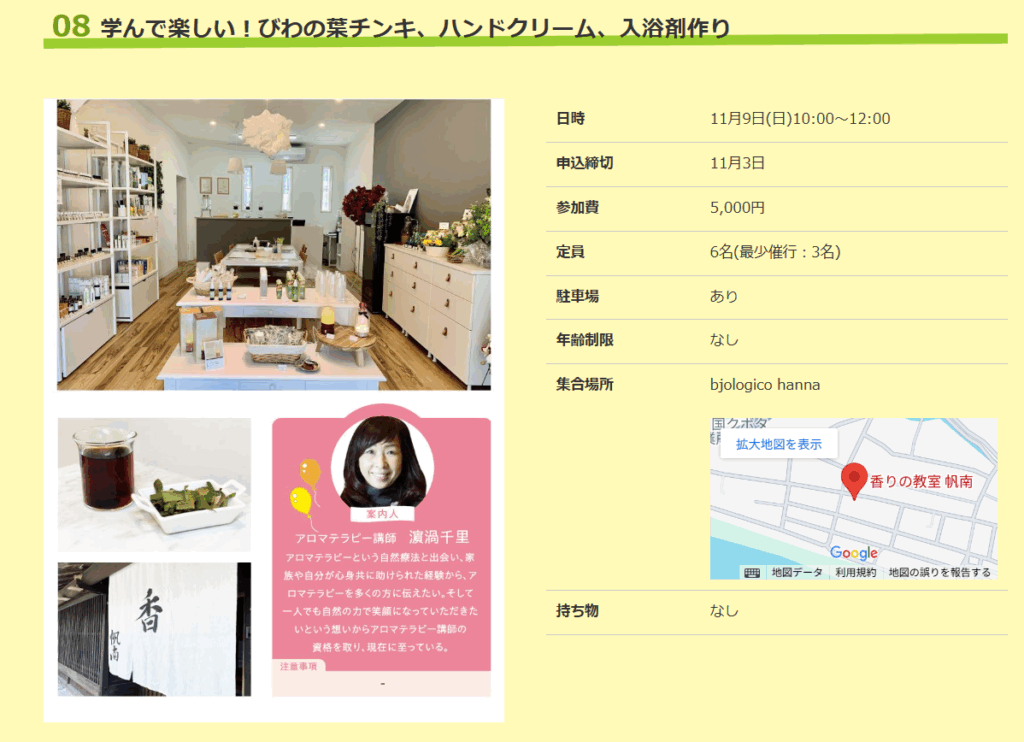 アロマ好きな方や、ナチュラルライフに興味がある方にぴったりの癒し体験です🌼