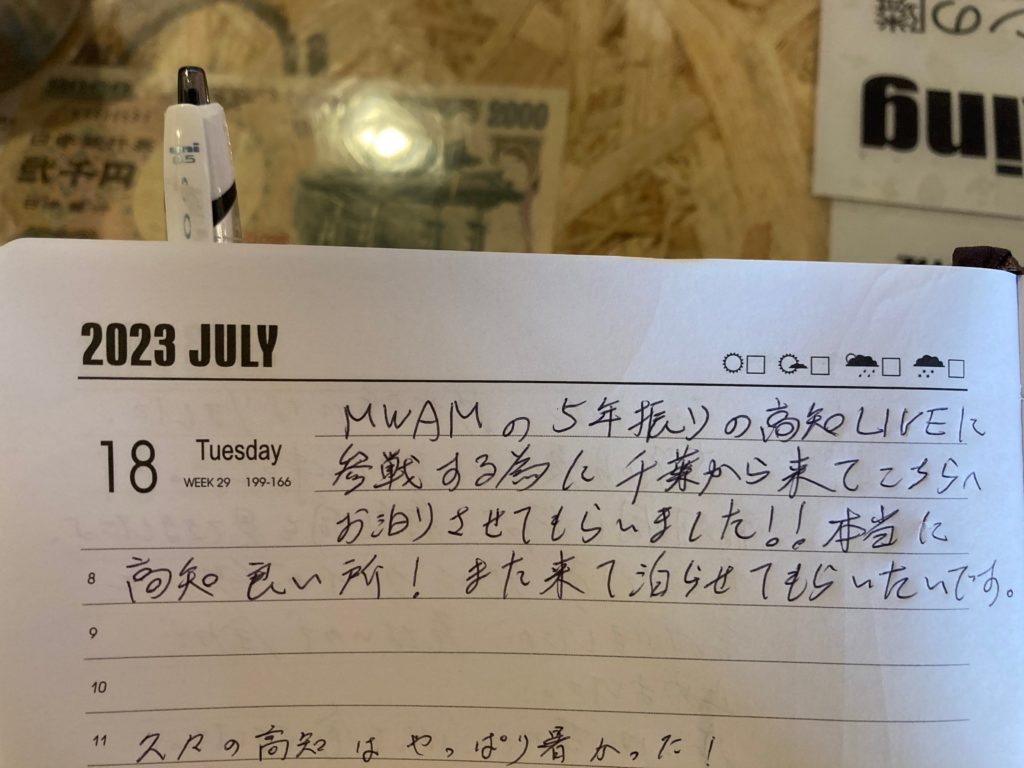 MAN WITH A MISSION の5年ぶりの高知ライブに参戦するために千葉から来てこちらにお泊まりさせてもらいました!!本当に高知良いところ!また来て泊らせてもらいたいです。