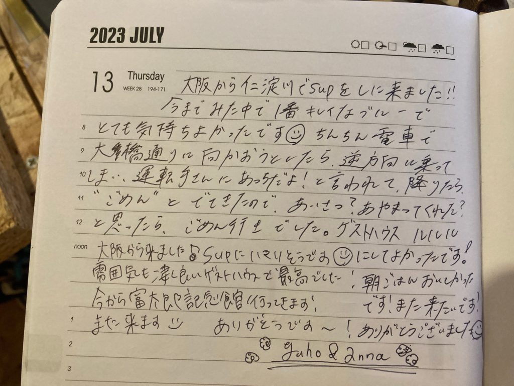 大阪から来ました♪ SUPにハマりそうです。雰囲気も凄く良いゲストハウスで最高でした!